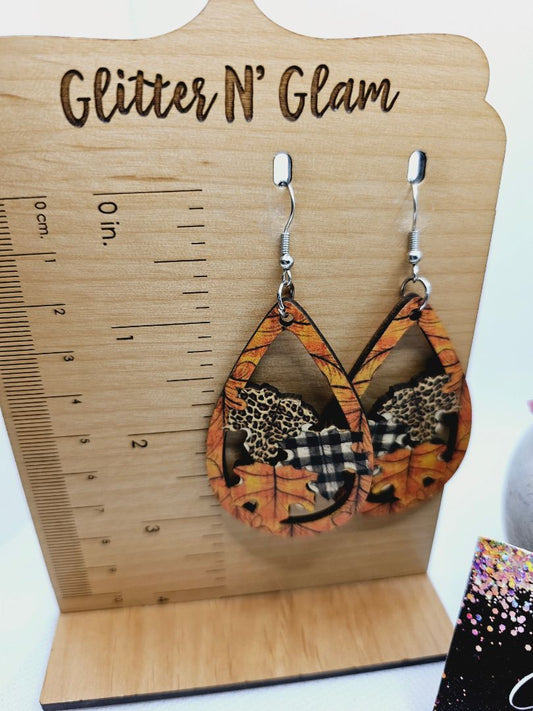 1874 Wood Leaves Dangle Earrings