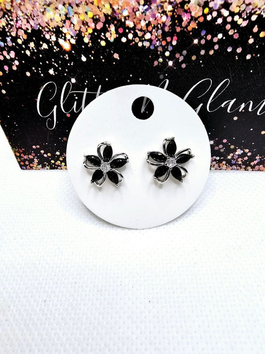Black and silver Glitter N Glam 2422 Black Flower Stud Earrings with Bling
