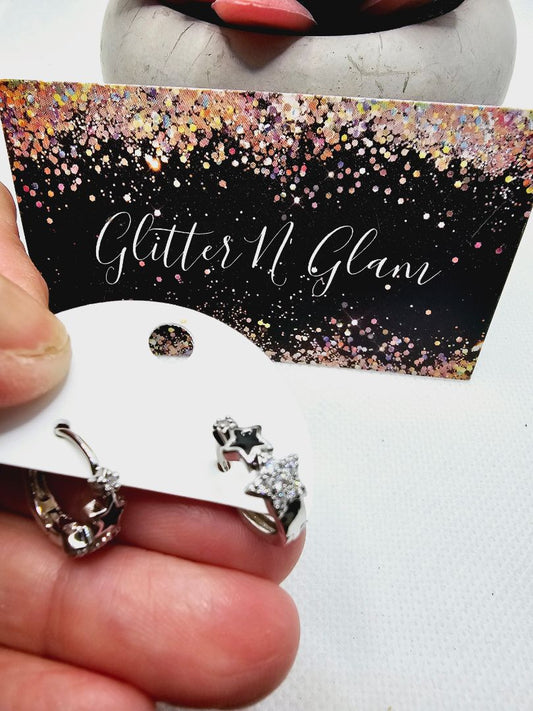 Black and Silver Glitter N Glam 2398 Silver Star Huggie Hoops