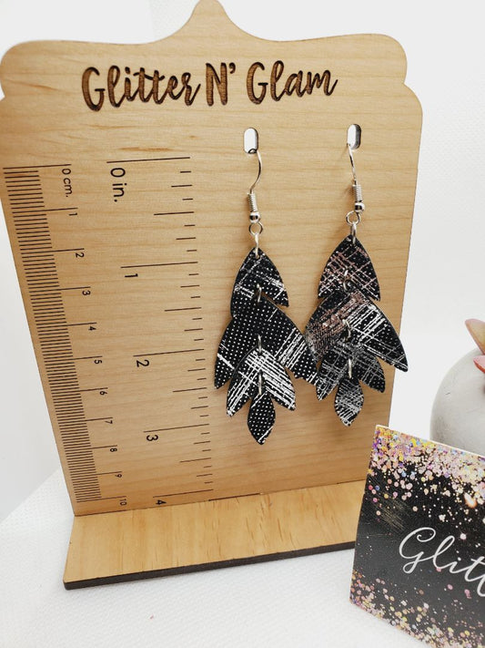 Black and silver Glitter n Glam 2270 Mini Silver and Black Flower Hoops