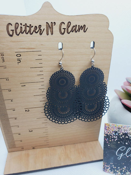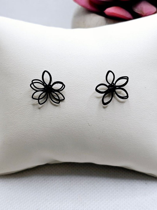Black Glitter N Glam 2598 Black Flower Stud Earrings