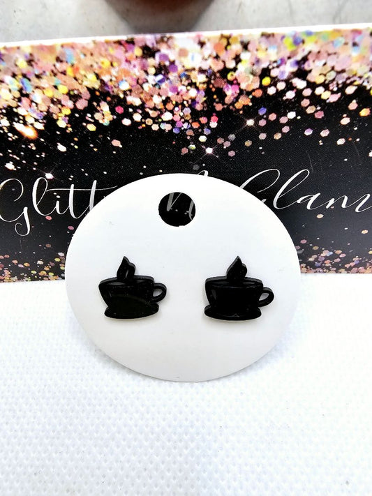 Black Glitter N Glam 2419 Black Coffee Cup StudsEarrings
