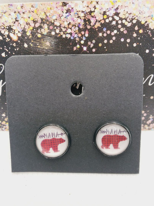 Black Glitter N Glam 1057 Mama Bear Stud Earrings