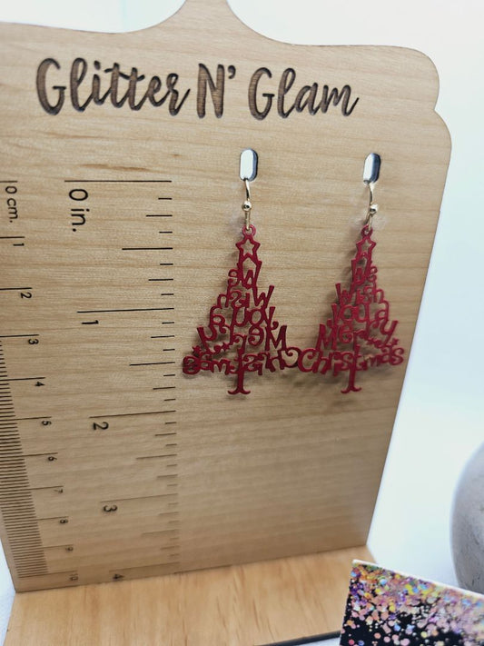 Glitter N Glam 1998 "We Wish You A Merry Christmas" Red Tree Dangle Earrings