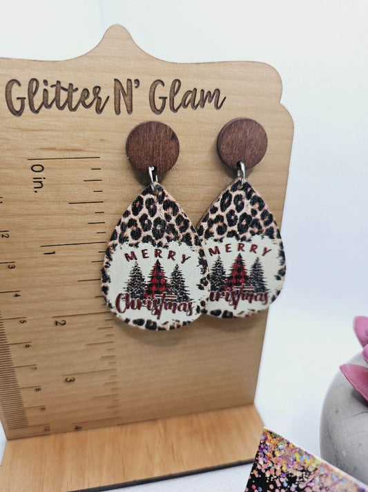 Glitter N Glam 1992 Wood Leopord Print Christmas Dangle Earrings