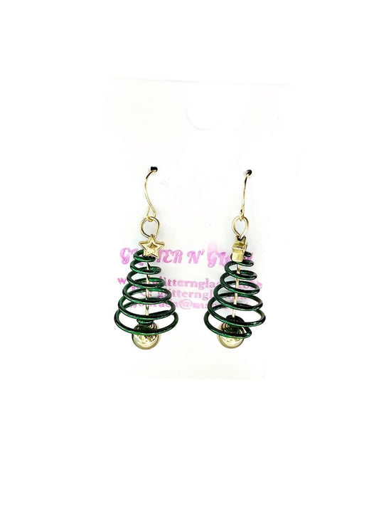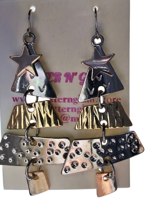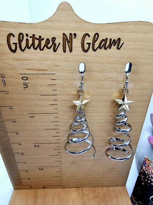 Glitter N Glam 2428 Gold/Silver Twisted X-mas Tree Dangle Earrings