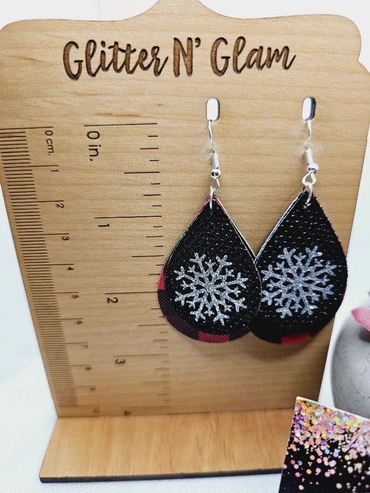 Glitter N Glam Jewelry2018 Buffalo Plaid with Silver Snowflake Dangle Earrings