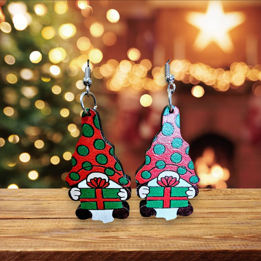 Glitter N Glam 2509 Wooden Noem Dangle Earrings Holding a Present