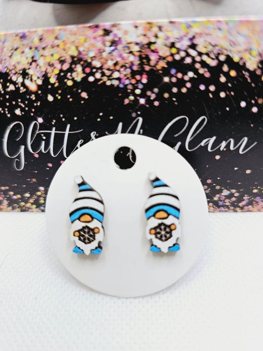 Glitter N Glam 2023 Wood Gnome with Snowflake Stud Earrings