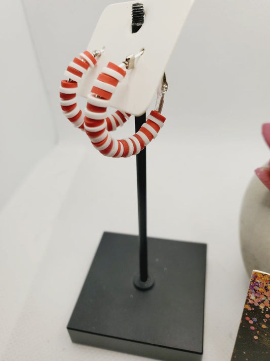 Glitter N Glam 1103 Red and White Polymer Clay Small Hoop Earrings
