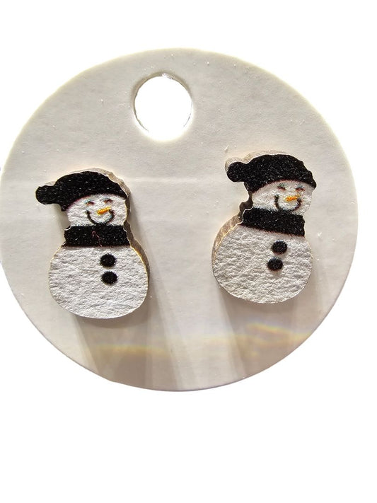 Glitter N Glam 2508 Wood Snowman Stud Earrings