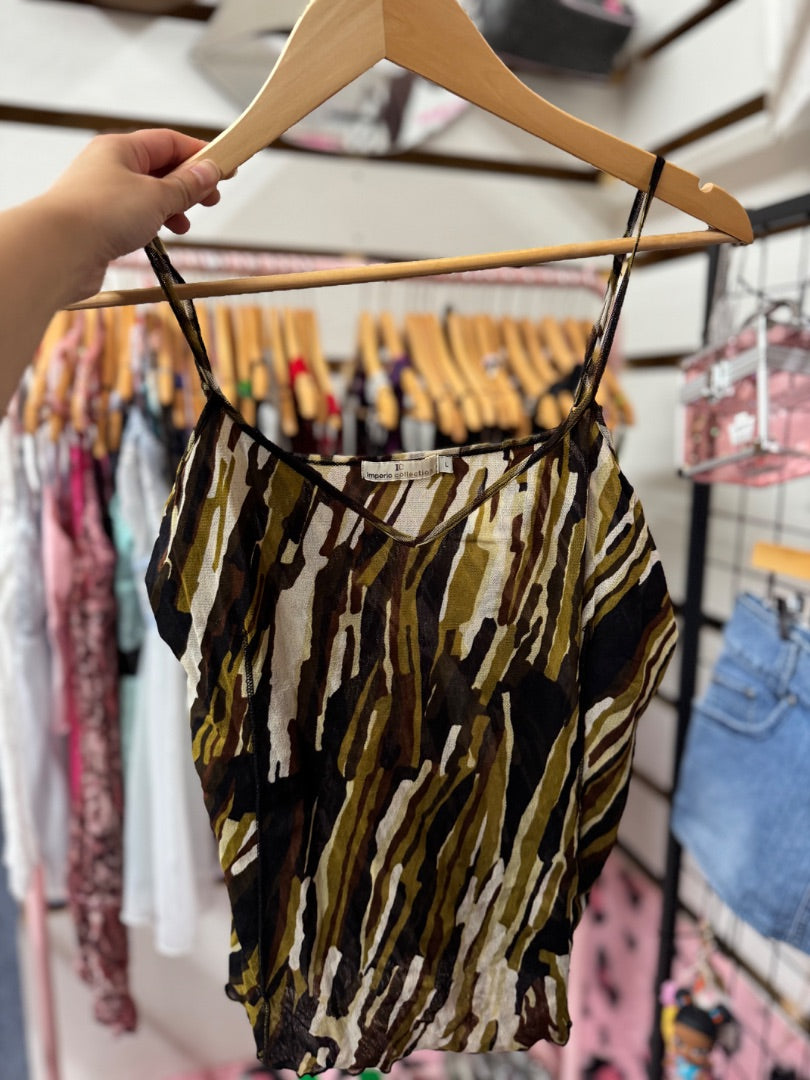 Brown Imperio collection Y2K abstract mesh cami, large