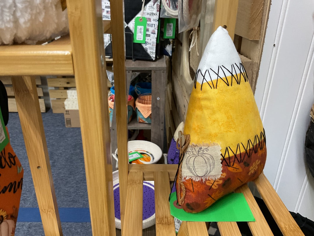 Fabric Candy Corn, Burnt Orange w/small wood heart