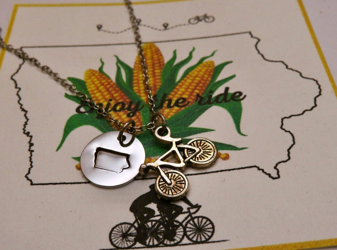 Iowa bike necklace