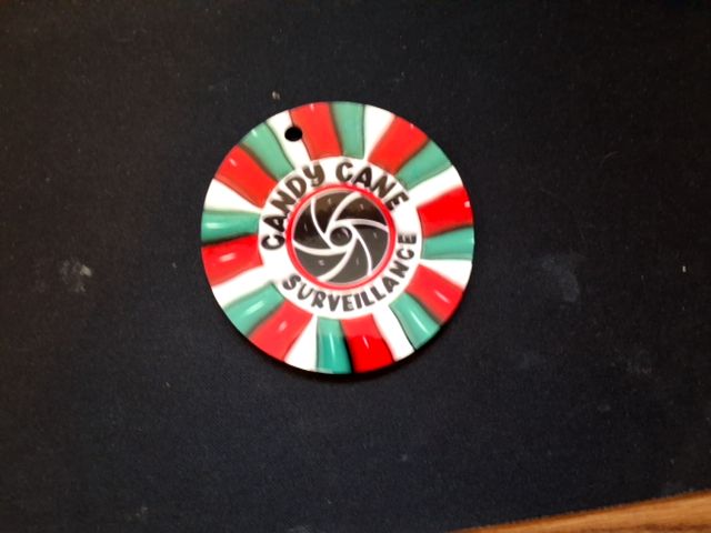 Double sided candy cane surveillance ornament